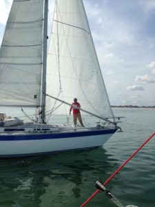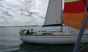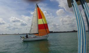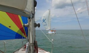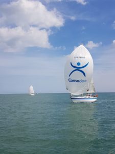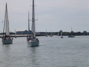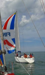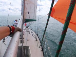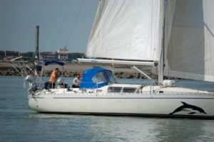 Finalement, avec les quelques risées qu’Éole a bien daigné nous accorder, toute cette armada c’est mises en route vers la Belgique. A bord, la bonne ambiance était de mise et Pierre, comme à son habitude, a donné aux Dauphins une leçon de voile pour leur expliquer ce que c’est d’avancer …
