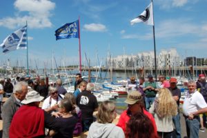 Lorsque le “Stop !” de Marc est tombé, impératif, irrésistible, toute cette flotte a fait, dans une coordination digne du ballet du Bolchoï, volte face devant Malo et les spis sont sortis de leur sac. Le vent s’étant levé, et les navigateurs se prenant au jeu, la bagarre a fait rage (il faut dire que le comité payait l’apéro une fois revenus au ponton, ça motive !).